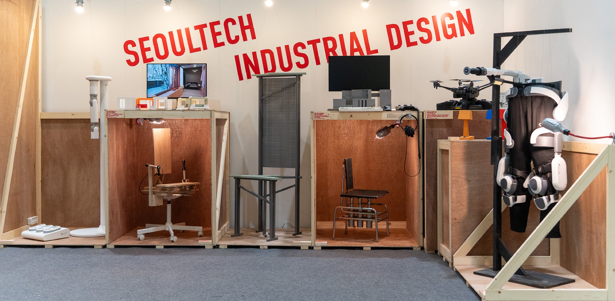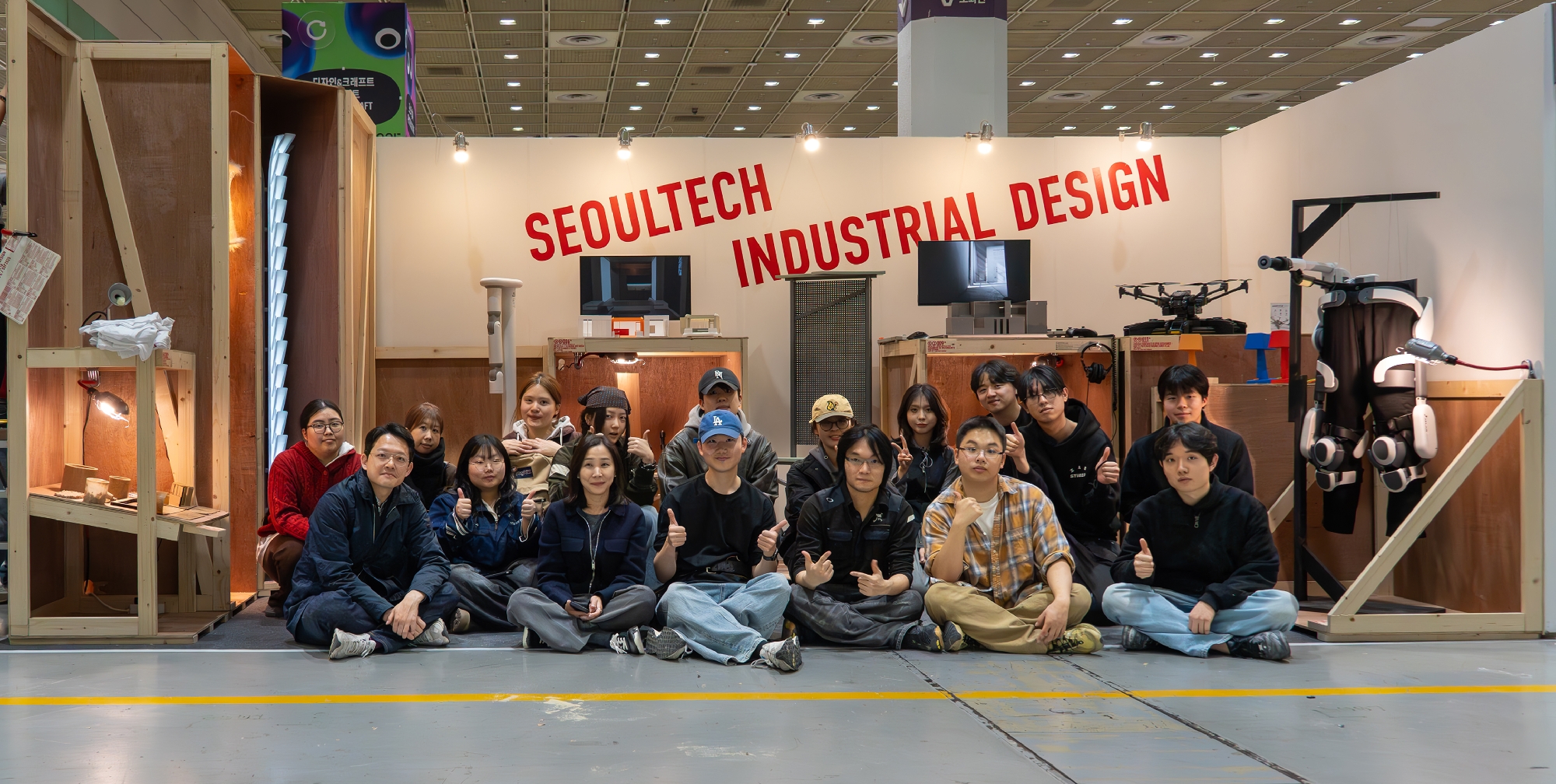 디자인학과 산업디자인전공에서는 제24회 서울디자인페스티벌에 참가하여 가구, 조명, 공간, 로봇 디자인 등 총 13점의 다양한 작업물을 공개했습니다. 이번 전시에서는 일반적인 백색 전시장의 틀에서 벗어나 ‘산업’이라는 학과 정체성을 강하게 담아낸 부스를 선보였으며, 학생들이 직접 전시대 제작과 부스 디자인 전 과정을 담당하여, 산업현장의 거친 질감과 에너지를 생생하게 구현했습니다. 이번 제24회 서울디자인페스티벌 참가는 산업디자인학과의 다양한 학생 작업물을 선보이는 동시에, 특색 있는 전시장 컨셉을 시각적으로 구현한 의미 있는 도전이었습니다.