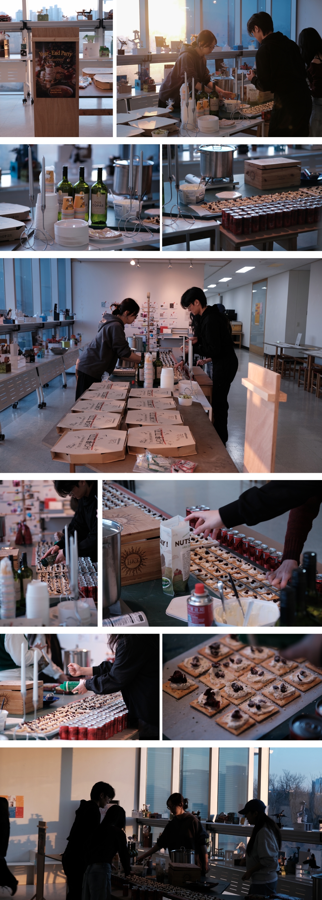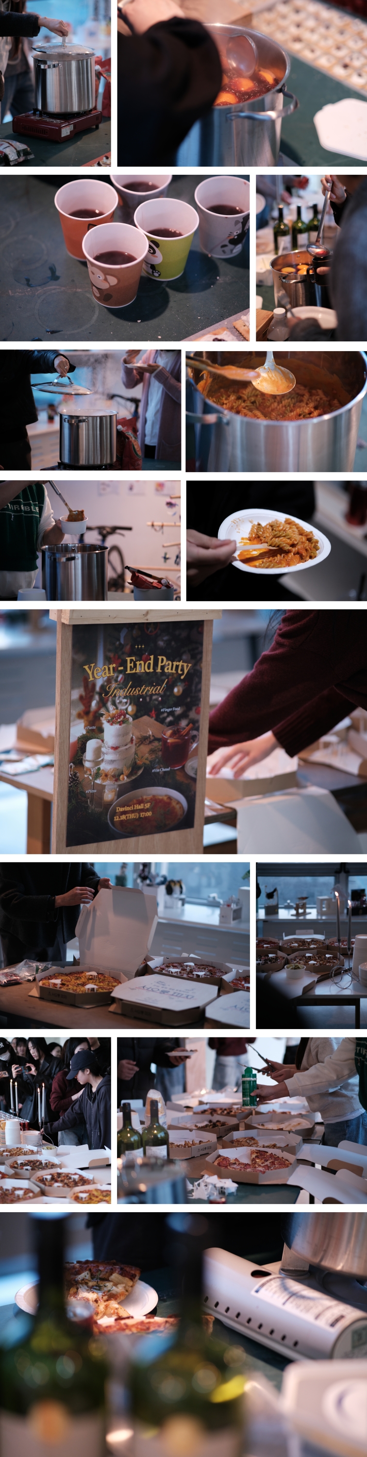 2025년 12월 18일, 다빈치관 5층 로비에서 연말 파티가 진행되었습니다. 한 학기동안 고생하신 교수님과 학생들이 함께 모여 뱅쇼, 파스타, 피자 등 다양한 음식을 나누며 즐거운 시간을 보냈습니다. 또한 로비에 전시된 과제전 작품들을 감상하며 한 해를 되돌아보는 뜻깊은 시간을 가지며 2025년을 마무리하였습니다.
